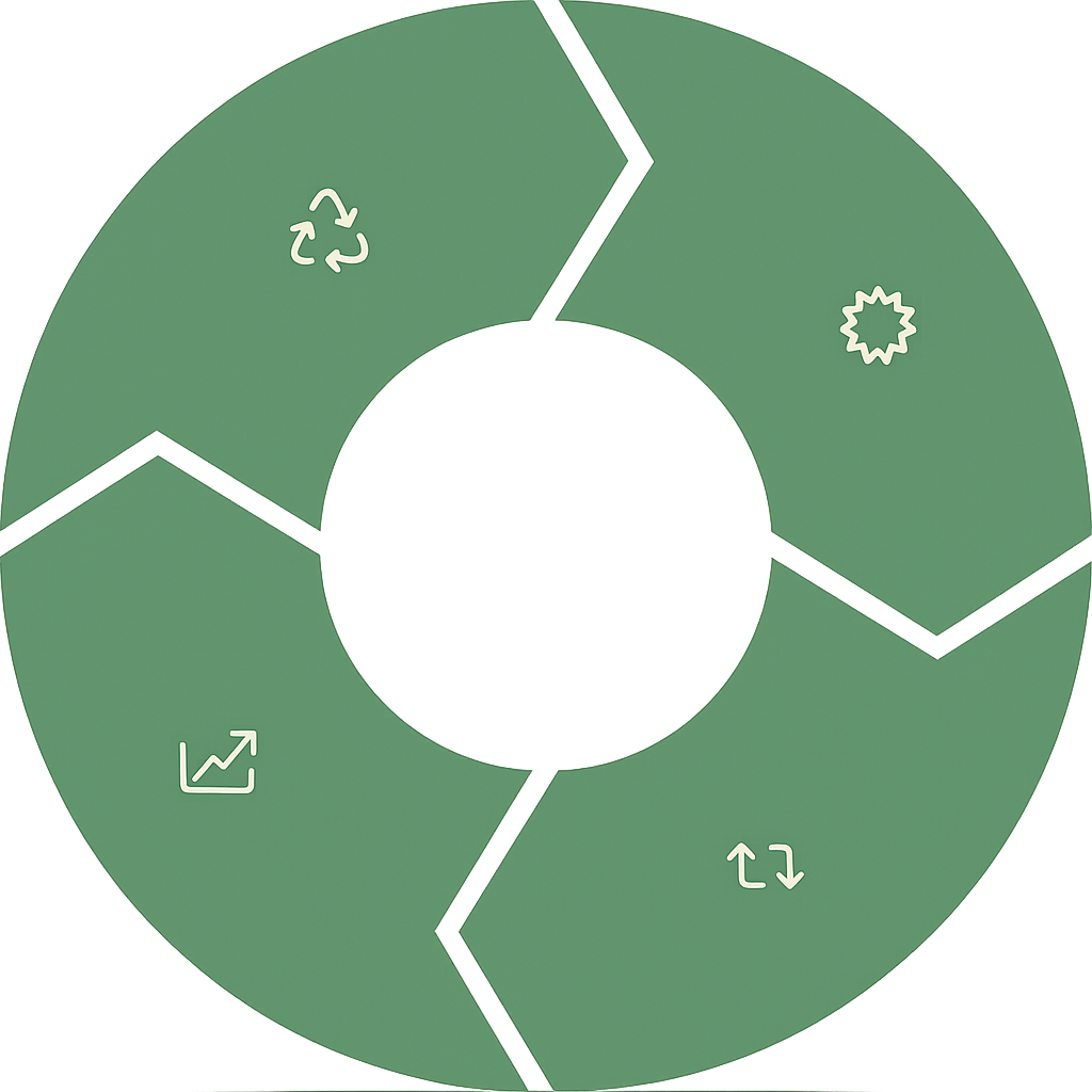 Les matériaux revalorisés réintègrent le circuit économique sous forme de nouveaux produits durables.